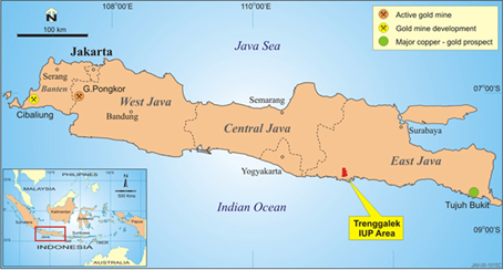 The Trenggalek project lies in the prospective Southern Mountains Province of East Java, which contains the large Tumpangpitu porphyry copper-gold deposit in the Tujuh Bukit district.