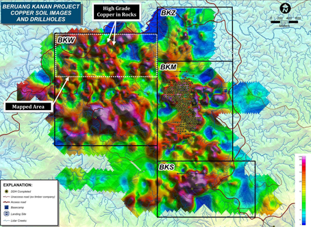 Asiamet said its geologists will soon commence mapping and sampling the largest and strongest copper in soil anomaly at BKW measuring 1.7km x 1km, with the goal of defining near surface copper mineralization for immediate drill testing.