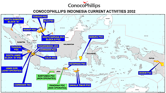 Conoco merged with Phillips earlier this year. Prior to merging, Conoco acquired Gulf Canada Resources, which in turn controlled Gulf Indonesia Resources, making ConocoPhillips an Indonesian major gas player.