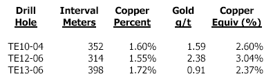 In addition, FCX is pursuing additional mineralization below MLZ (MLZ Deep). Deep holes drilled as part of the 2003 MLZ Deep program intersected high-grade copper and gold mineralization as indicated in the table below.