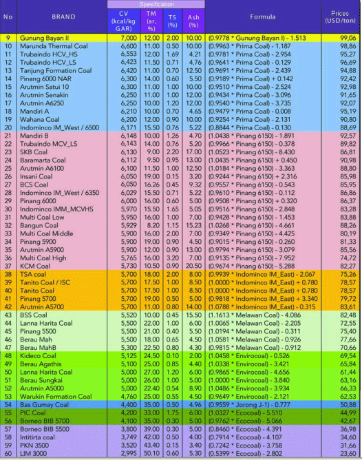 Coal price reference is based on coal with GCV (GAR) of 6,322 kcal/kg, total moisture (arb) of 8.00 percent, total sulphuric content of 0.8 percent, ash content of 15.00 percent and free on Board (FOB) Vessel.