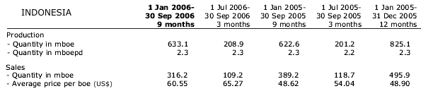 The Jati-1 exploration well (WI 25%) was plugged and abandoned as uncommercial in the first half of 2006.