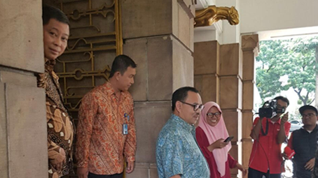 Minister of energy and mineral resources Ignatius Jonan (left) and his predecessor Sudirman Said (center wearing blue batik) pose for picture after a meeting on Friday (march 3, 2017). Ignatius invited Sudirman into an informal meeting at his office to discuss various issues in the mining and energy industries (petromindo/godang sitompul).