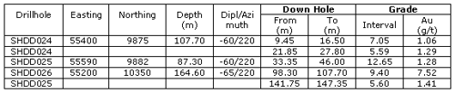 As previously announced, the majority of drillholes planned during this current program (28 holes for 3100m) are designed to increase the inferred gold resource already outlined at the Sihayo-1 North prospect. While moving the drill rig north from where it was previously located at the Sambung prospect, two holes of the current program were drilled at the Sihayo-1 prospect, located some 600m south of Sihayo-1 North.