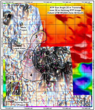 ?The magnetic data highlights the possibility of a deeper porphyry source to the high grade Gunung Rosa mine. Two drill targets have been identified by the modelling of the data. The first target is 800 meters to the north of the Gunung Rosa Mine site at Legok Kadu and the second target a further 600 meters north at Mala,? the company said in a statement.