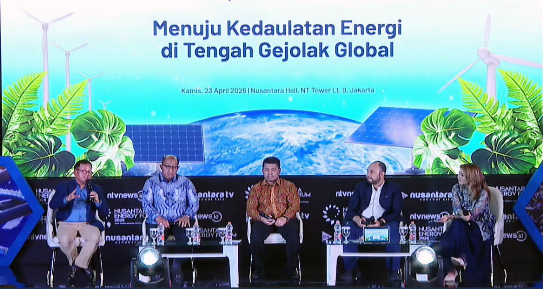 (From left) Sugeng Suparwoto, Vice Chairman of Commission XII at the House of Representatives; Yudistian Yunis, President Director of PT Geo Dipa Energi (Persero); Edwil Suzandi, Director of Exploration and Development at PT Pertamina Geothermal Energy Tbk; and Anggawira, chairman of the Indonesian Energy, Mineral and Coal Suppliers Association (ASPEBINDO), attend the National Energy Nusantara Energy Forum 2026 on April 23.