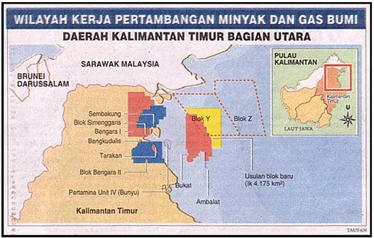 The dispute involves two offshore Indonesian production sharing contract concession areas, the Ambalat Block and the Bukat Block, which partly overlap two offshore production sharing contract concession areas offered by Malaysia as its Sabah-Y and Sabah-Z Blocks (see map). The disputed area lies a few miles offshore from the island of Borneo and northeast of the Indonesian province of East Kalimantan and southeast of the bordering Malaysian state of Sabah.