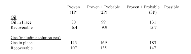 The reserves (recoverable volumes) are characterized as technical reserves pending final an approval of full development by the joint venture. The DeGolyer and McNaughton reserves are: