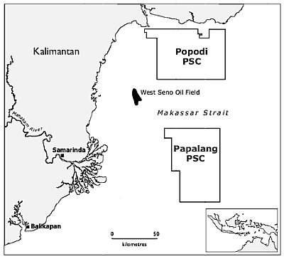 Both PSCs are located seaward of West Seno, Indonesia's first deep-water producing oil-field which is scheduled to come on-stream in the third quarter of 2003.