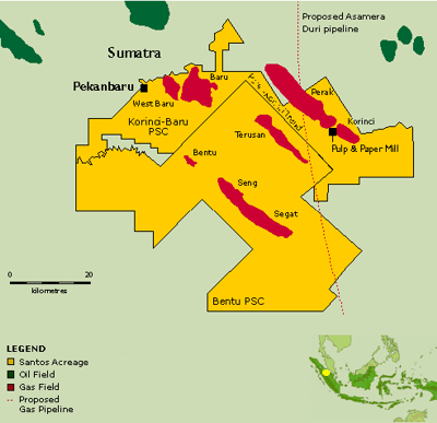 Australian listed oil company Santos Limited announced Wednesday the sale of the subsidiaries holding its 61.1 percent operated interests in the Bentu and Korinci-Baru Production Sharing Contracts (PSC) in Central Sumatra, Indonesia.