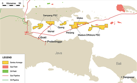 Santos is the operator of Sampang PSC with 45 percent interest. Singapore Petroleum Co. has 40 percent interest, and Melbourne-based Cue Energy Resources Ltd. holds the remaining 15 percent.