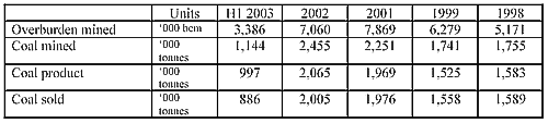 The Sebuku coal mine in Kalimantan in Indonesia (owned 80% by the company) has achieved steady production levels in the first half of 2003.