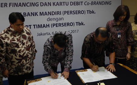 Under the agreement, the state-run Mandiri will prepare specific debit cards dubbed PT Timah Mining Cards for 1,000 individual suppliers and 100 companies and cooperatives that act as Timah?s working partners. Timah will then disburse payment to these suppliers through the newly launched cards.